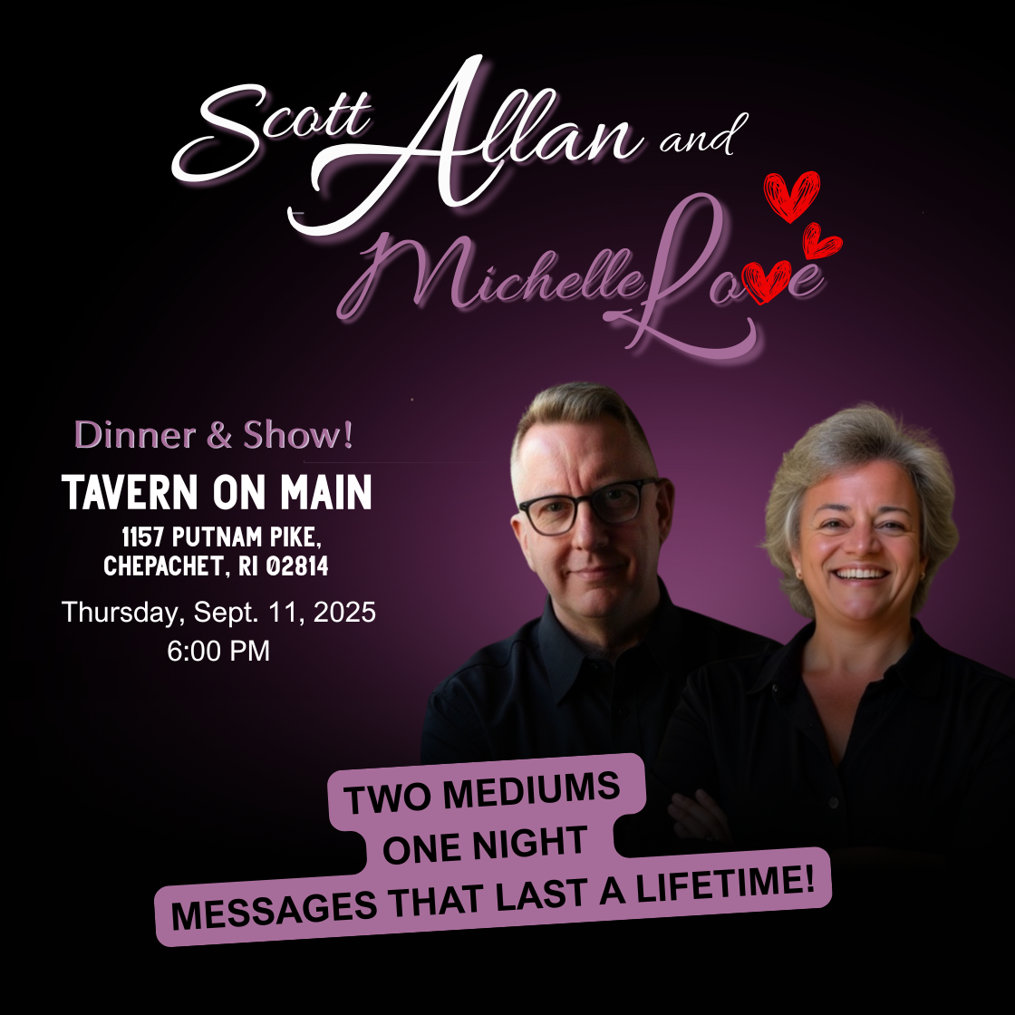 Join Mediums Scott Allan and Michelle Love for Dinner and a Demonstration of Mediumship at Tavern On Main in Rhode Island!